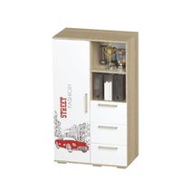 Пенал "Сенди" оборудован 3 ящиками. Открытая часть шкафа комплектуется полками.