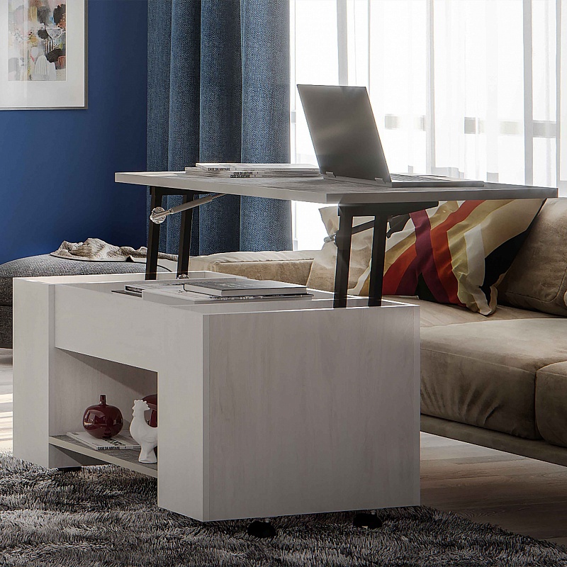 Журнальный столик в гостиной – предмет постоянного использования. Возможность трансформировать его в рабочий позволит сэкономить на покупке письменного стола и с удобством разместиться с ноутбуком дома.Столешница в декоре Ателье светлый изготовлена из ЛДСП толщиной 22 мм и облицована кромкой ПВХ 2 мм, что обеспечивает ее надежность и высокую износоустойчивость