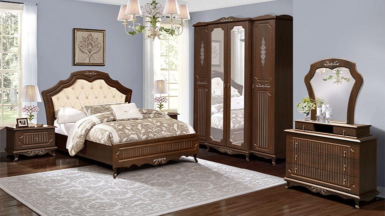 Коллекция "Кантри" сочетает в себе красоту классического стиля и современные тенденции в производстве мебели. Каждый элемент гарнитура привлекает своим особенным дизайном: высокая спинка кровати, шкаф с большими зеркалами, комод с оригинальной надстройкой и прикроватная тумба на изысканных ножках.