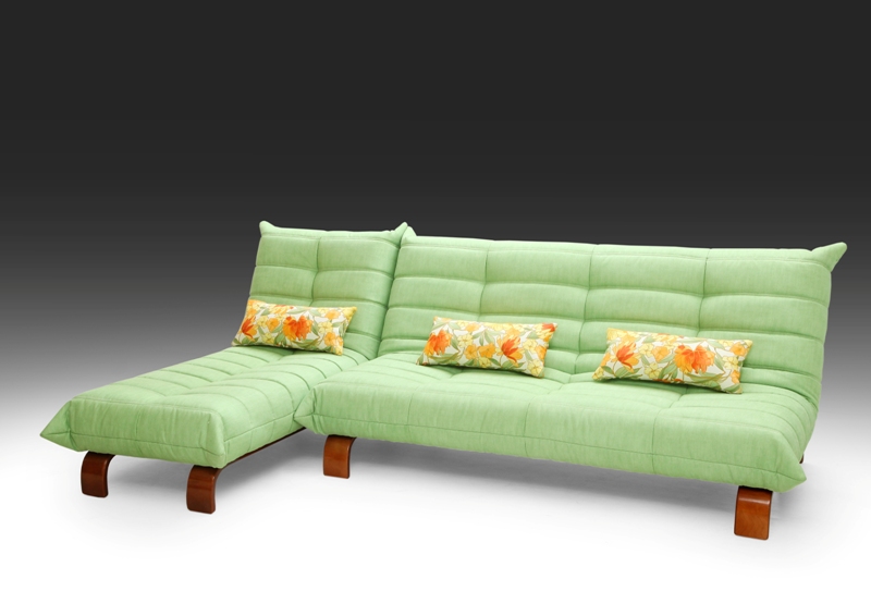 Необычный угловой диван, состоящий из дивана-книжки и оттоманки. Благодаря минималистическим формам он органично вписывается в современные интерьеры. А изогнутые деревянные ножки сделают его «своим» даже в помещениях, оформленных в классическом стиле. Диван может быть как единым целым, так и трансформироваться в набор из дивана, кресла и пуфа, который также способен выполнять роль оригинального журнального столика.