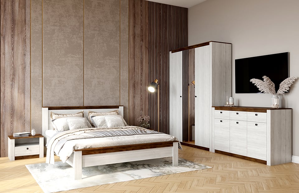 Спальня «Даллас» создаст гармонию в оформлении спальни. В таком цветовом исполнении мебель можно вписать в самые разные интерьерные стили: цветовая гамма отлично сочетается с другими оттенками.