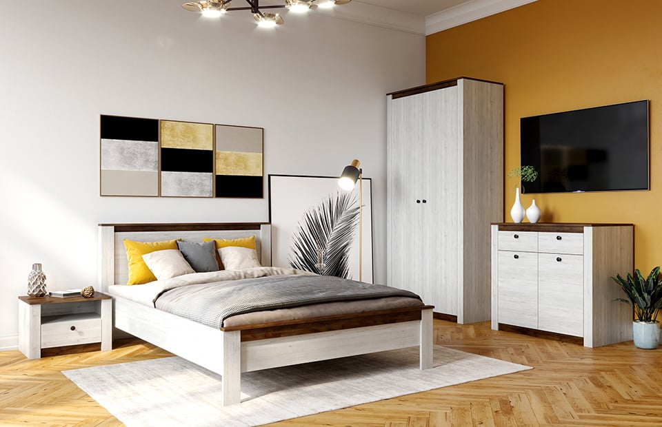 Спальня «Даллас» создаст гармонию в оформлении спальни. В таком цветовом исполнении мебель можно вписать в самые разные интерьерные стили: цветовая гамма отлично сочетается с другими оттенками.