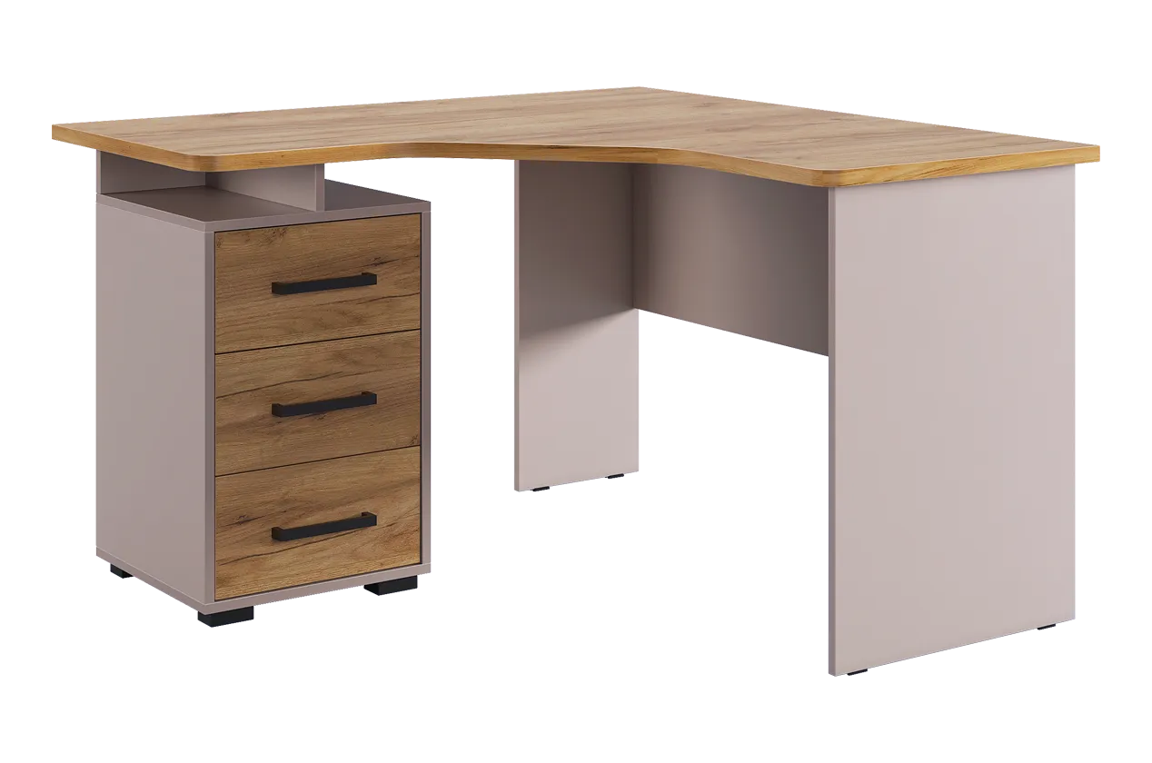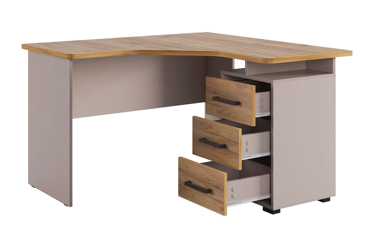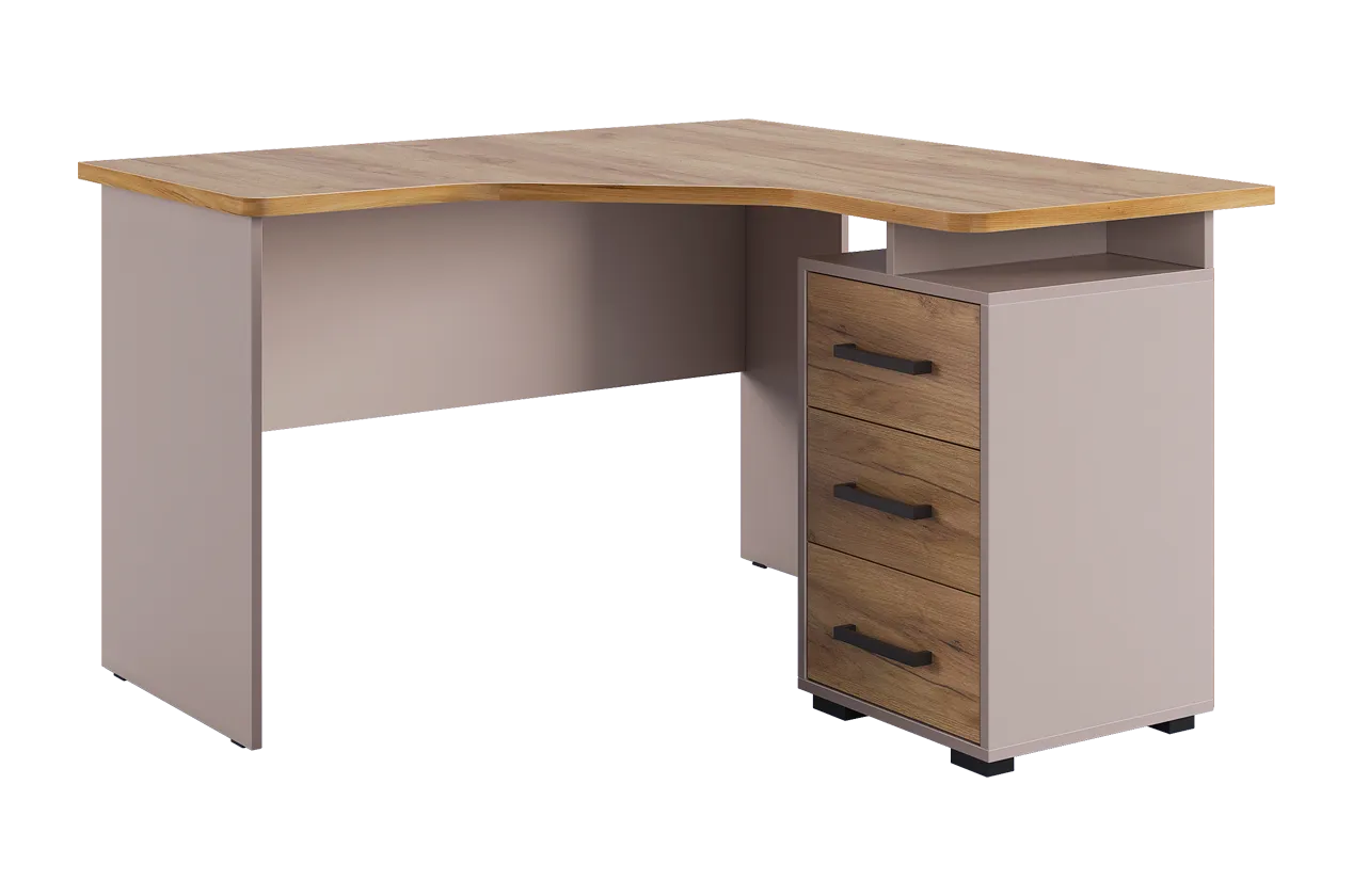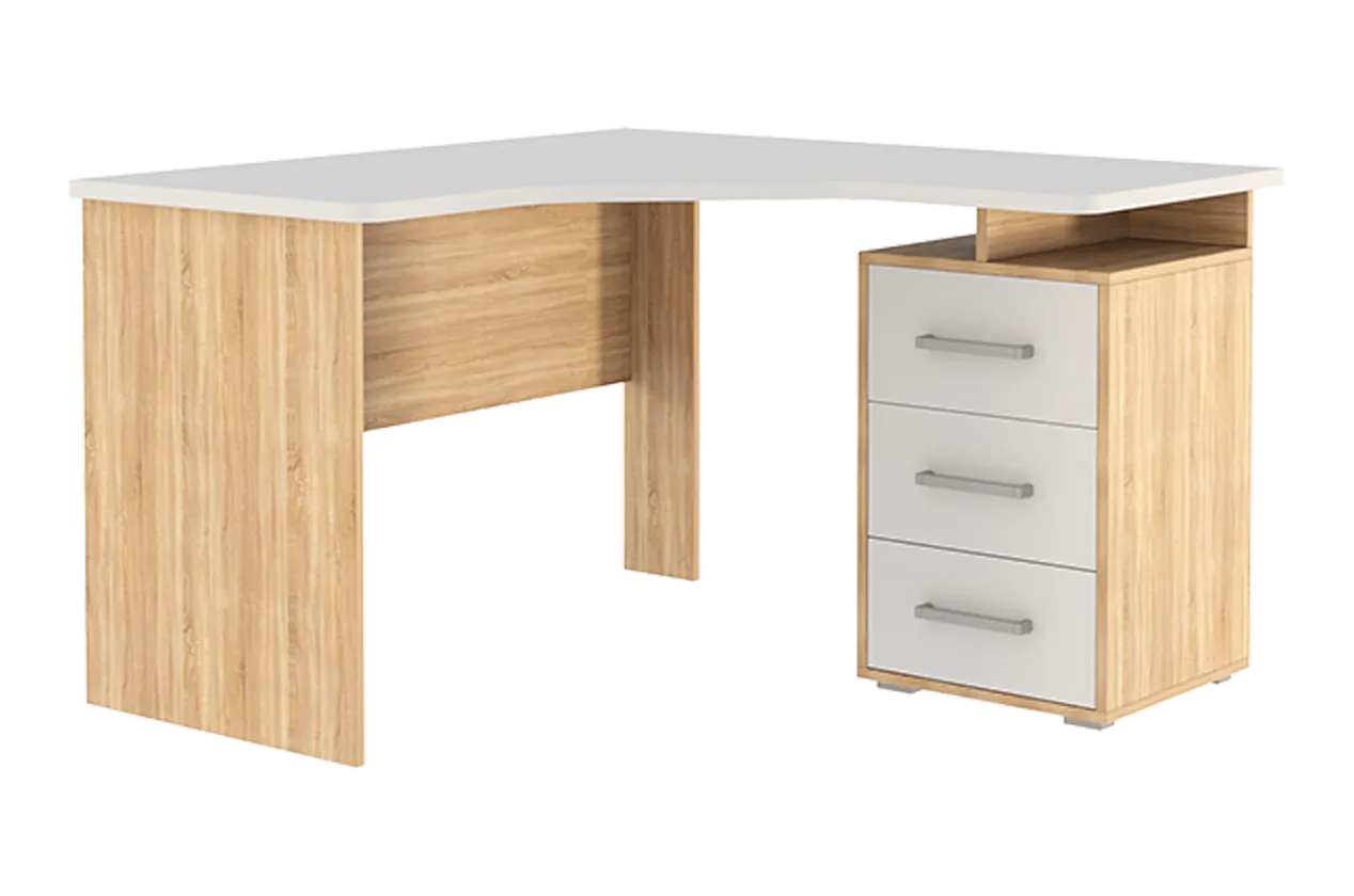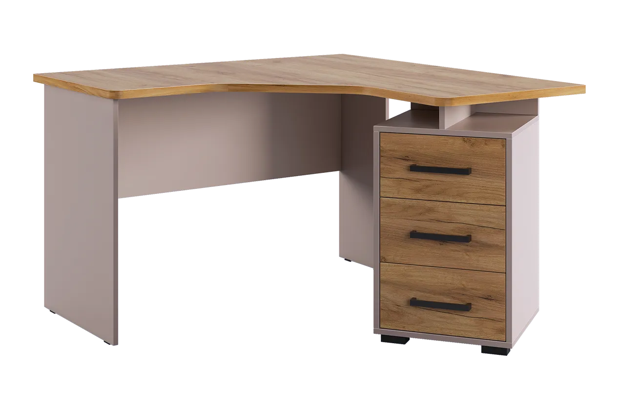 Угловой компьютерный стол «Лайт-2» может быть дополнен функциональной надстройкой или стеллажом той же серии. Главными особенностями данного стола являются радиусные элементы и утолщенная столешница – 22 мм, а также возможность собрать тумбу в одном из двух предусмотренных положений – прямом или диагональном. Сочетание удобства, лаконичности и простоты – идеальное решение для Вашего рабочего места.Характеристики: