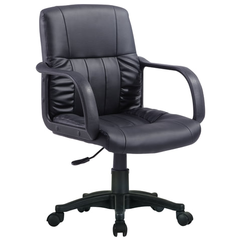 Доступное кресло для офиса и дома. Ничего лишнего: обивка из экокожи и пневматическая регулировка высоты сиденья.