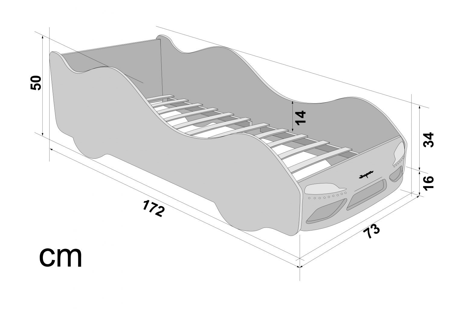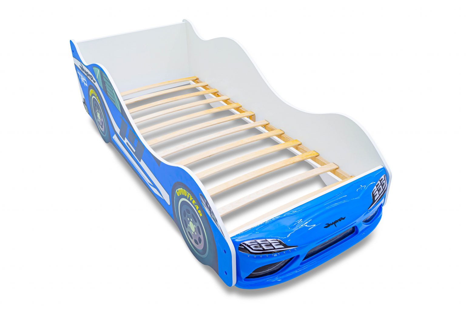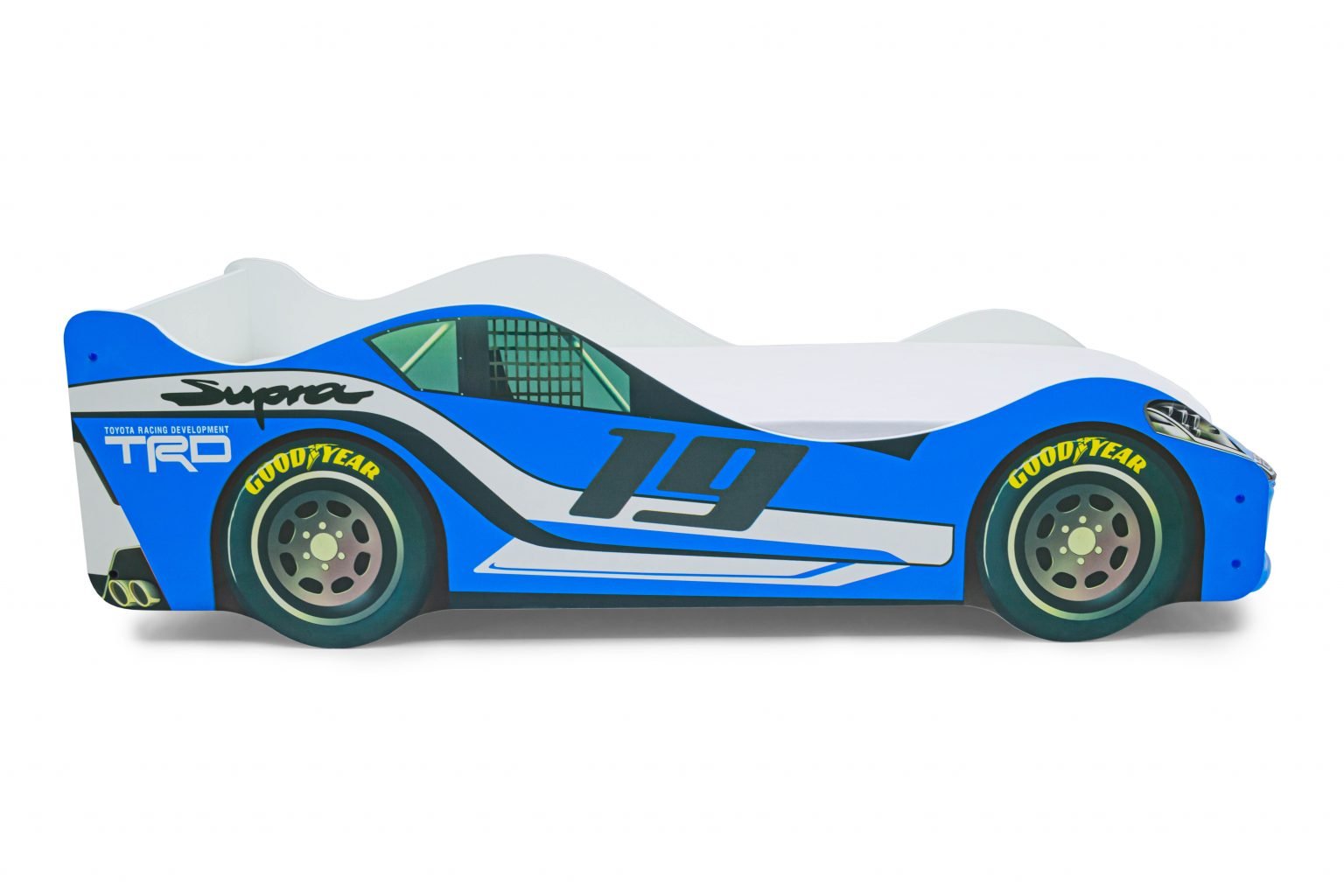 Детская кровать-машина “Супра” синяя с подсветкой фар украсит любую детскую комнату. Кровать-машинка станет любимым местом для сна и игр мальчика или девочки от 2 до 10-12 лет.