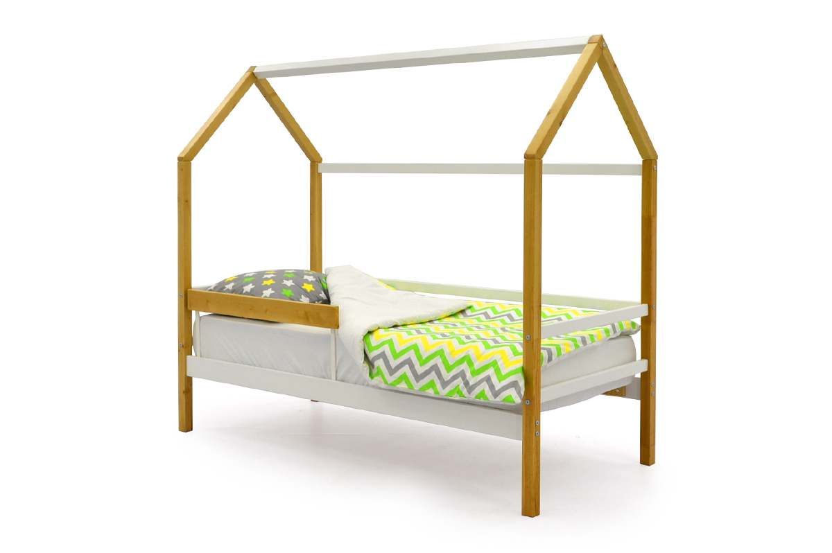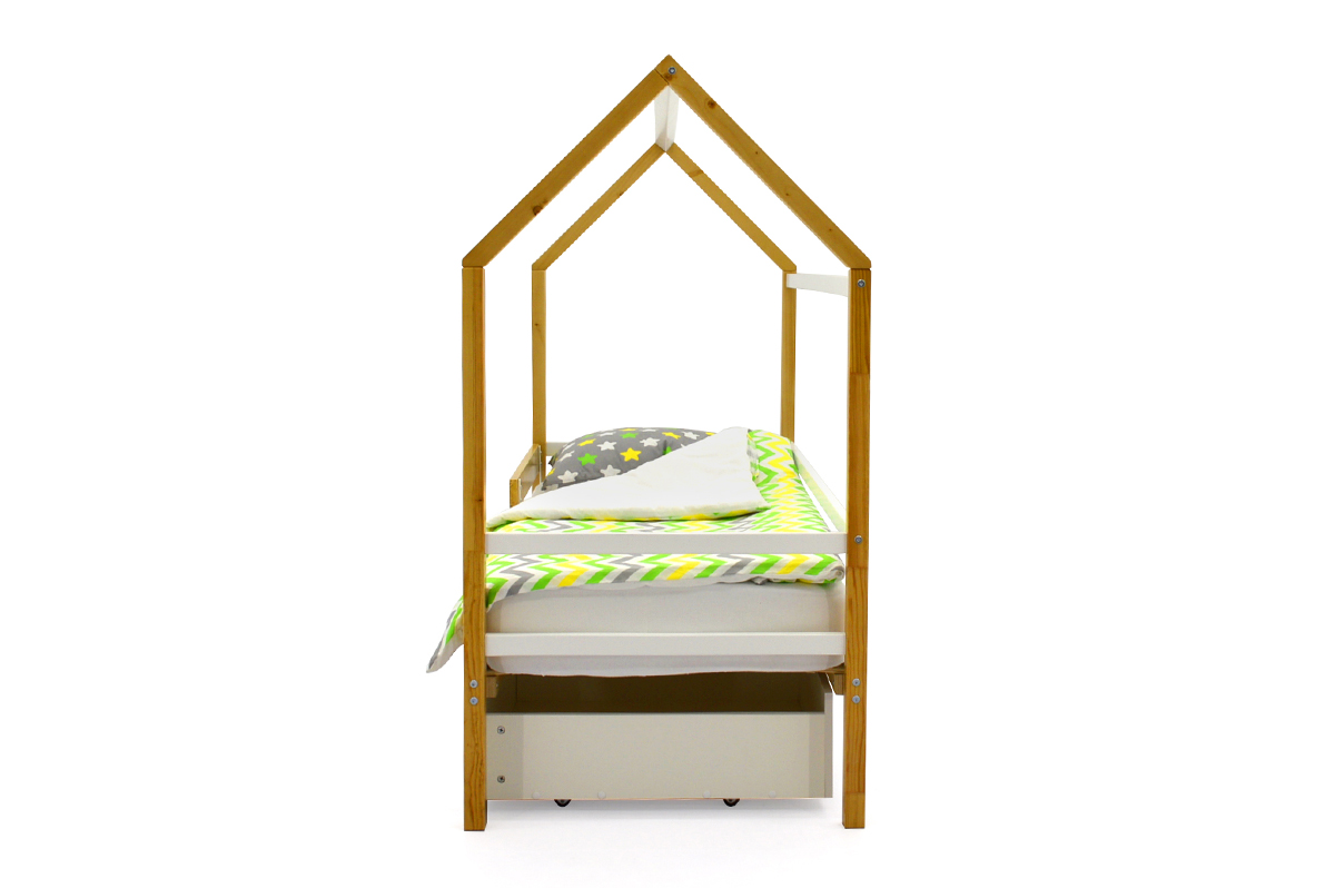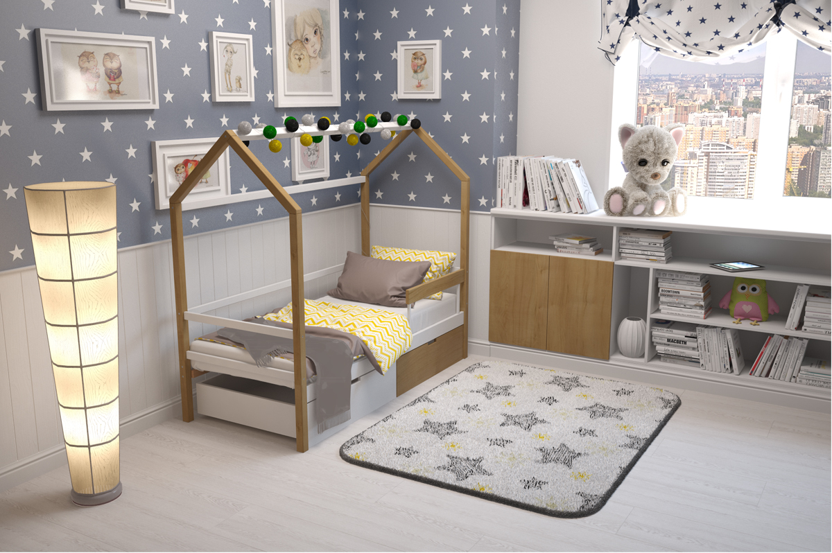 Кровать-домик легко превращается в целый замок для игр с помощью разноцветных тематических игровых накидок. Текстильная крыша на домике создаст ребенку уют и защищенное пространство.