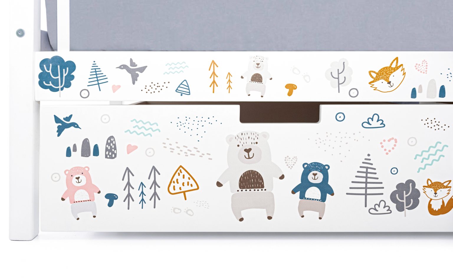 Кровать выполнена в скандинавском стиле, который очень популярен сейчас в интерьере и соответствует духу серии «Svogen» в целом. Милые рисунки оживят кроватку и подойдут к любой цветовой гамме в детской комнате.