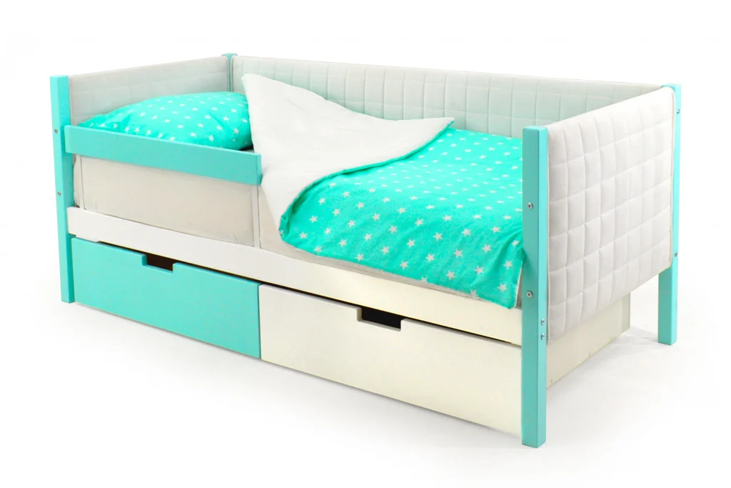 Детская мягкая кровать-тахта Бельмарко “Svogen мятно-белый” станет любимым местом для сна и игр мальчика или девочки от 2 до 10-12 лет.