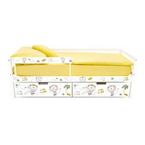 Ящики на колесиках удобны, когда нужно помыть полы под кроваткой или переставить ее с легкостью на другое место. Ребенок сможет самостоятельно при необходимости выдвинуть и задвинуть ящик. Ящик объемом 0,6 куб.м. отлично подойдёт для хранения постельного белья, игрушек и других вещей. Большой выбор цветовых решений фасадов ящика позволят создать свою идеальную кровать.