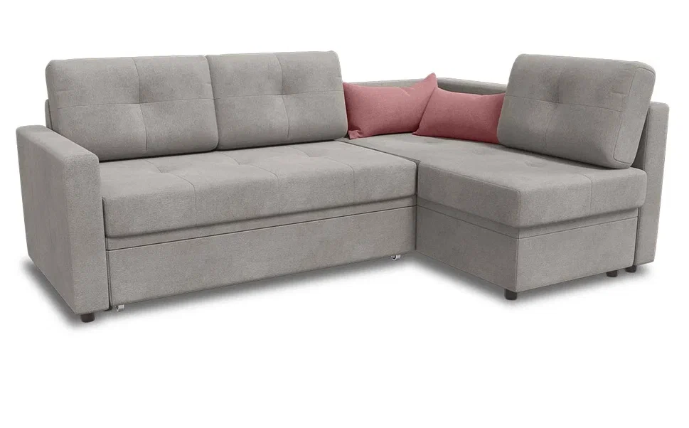 Максимально использовать площадь небольшой гостиной поможет современный угловой диван-кровать «Лира 1». Его основным преимуществом является наличие универсального угла, местоположение которого можно выбрать во время сборки. Механизм трансформации – «Дельфин», в основании дивана – ППУ и пружины «змейка». Производитель предусмотрел удобный ящик для хранения вещей или спальных принадлежностей в оттоманке.