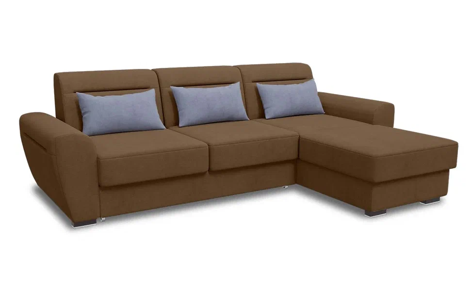 Глубокое посадочное место, дополнительные декоративные подушки под спину создадут комфорт для всех членов семьи. Механизм трансформации «Дельфин» не требует отодвигать диван от стены, что позволит использовать его как ежедневное место для сна. В оттоманке дивана имеется дополнительное место для хранения.