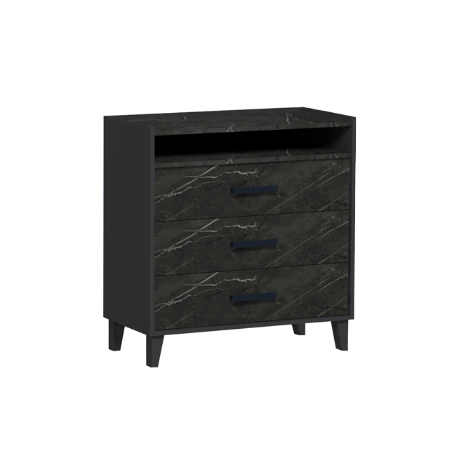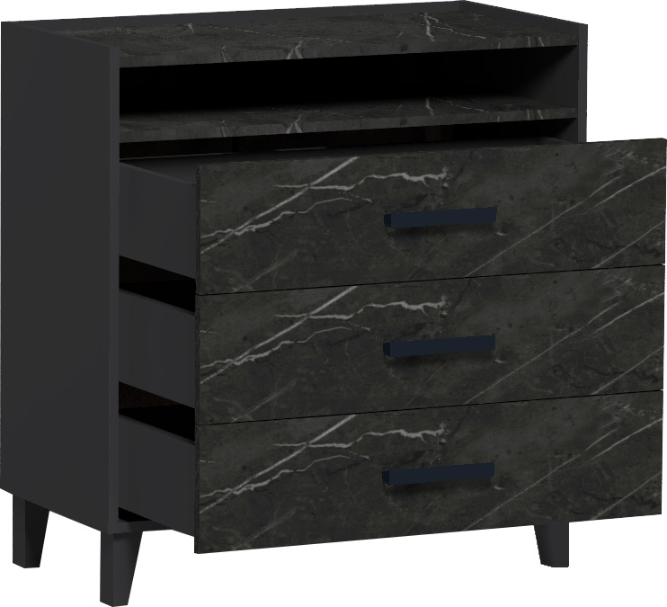 Айрис 455 Комод с нишей и 3 широкими ящиками на шариковых направляющих - выбор обладателей просторных спален. Благодаря его оптимальным габаритам (высота 881 мм, ширина 832 мм, глубина 420 мм), Вы сможете аккуратно хранить в нем все необходимое. Ящики выдерживают нагрузку до 10 кг каждый. Высота опор 120 мм