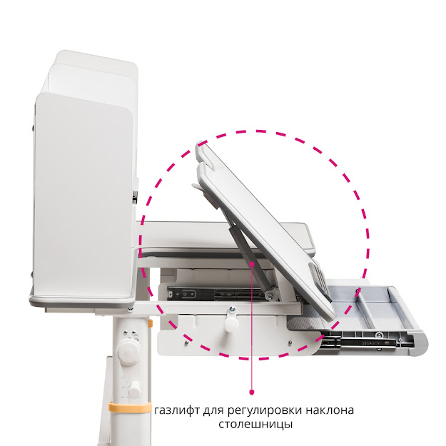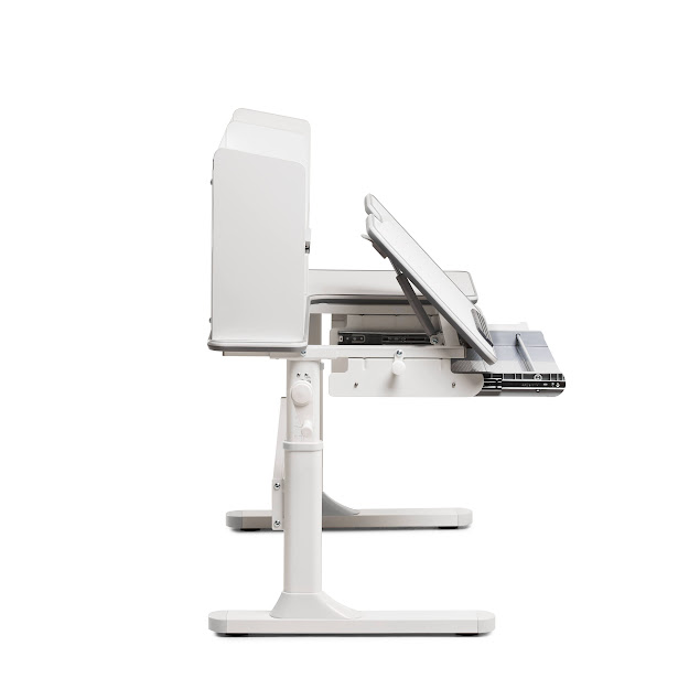Столешница имеет две зоны, наклоненную и статичную. Благодаря возможности наклона столешницы от 0° до 50° парта Fiore идеально подходит для любого вида обучения (письмо, чтение, рисование...). Также стоит отметить важность статичной части столешницы, на которой можно разместить лампу и ноутбук для удаленного обучения.
