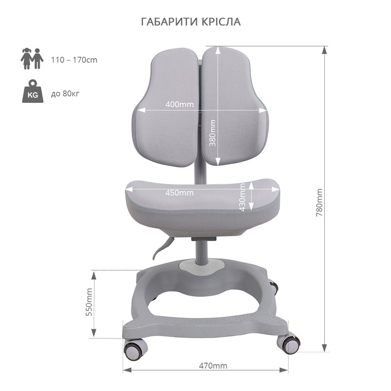 Модель рассчитана на продолжительное использование, подойдет деткам у которых рост от 110-170 см. Надежная база кресла способна выдержать нагрузку до 80 кг.