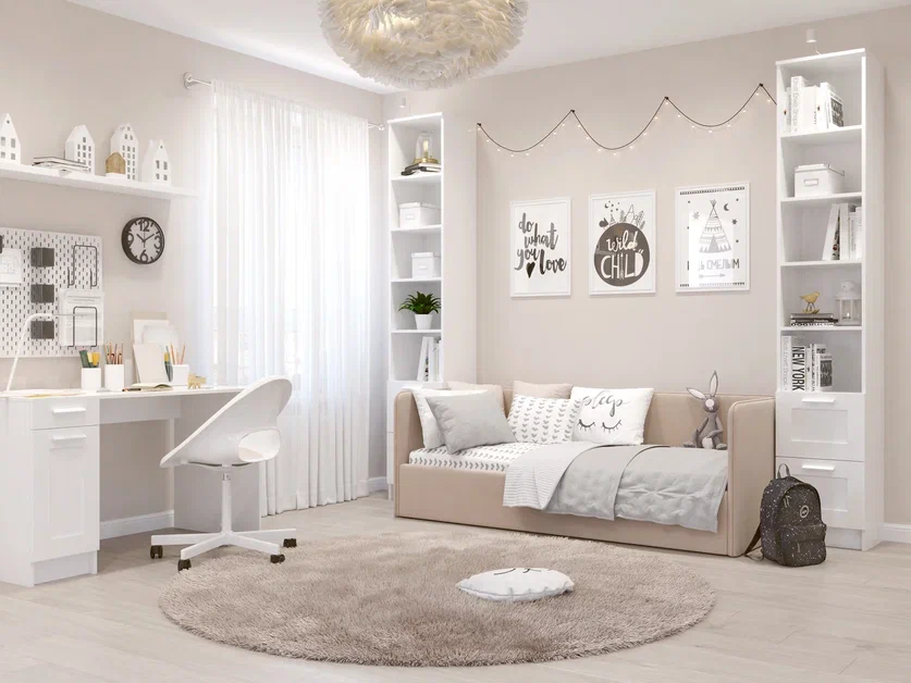 Диван-кровать Leonardo - Оригинальное и современное решение для детской комнаты в самых популярных нюдовых расцветках.