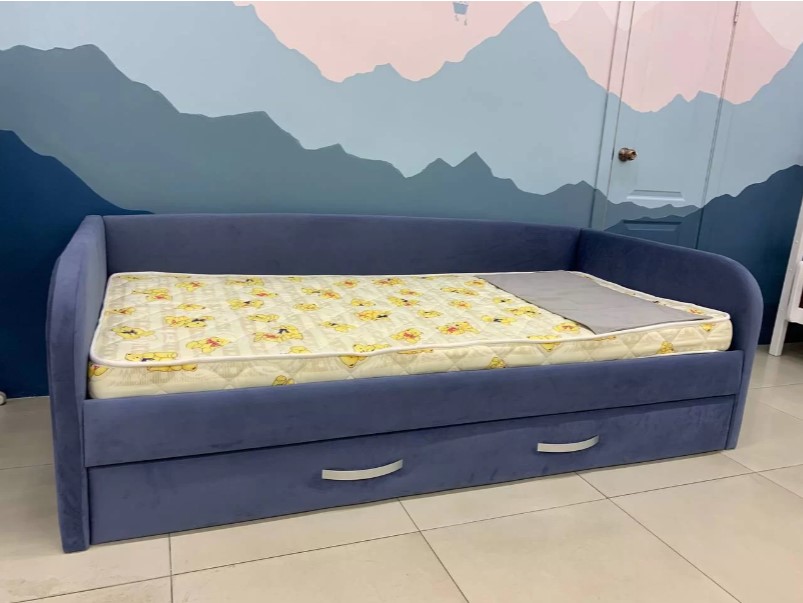 Модель оснащена выкатным ящиком для хранения. При изготовлении кровати использованы качественные материалы. Мягкость боковин и высокой спинки обеспечивает безопасный для здоровья наполнитель – ППУ и синтепон. Основание ортопедическое на цельносварной стальной раме. Вы можете выбрать обивку в велюре, флоке или рогожке в любом цвете.