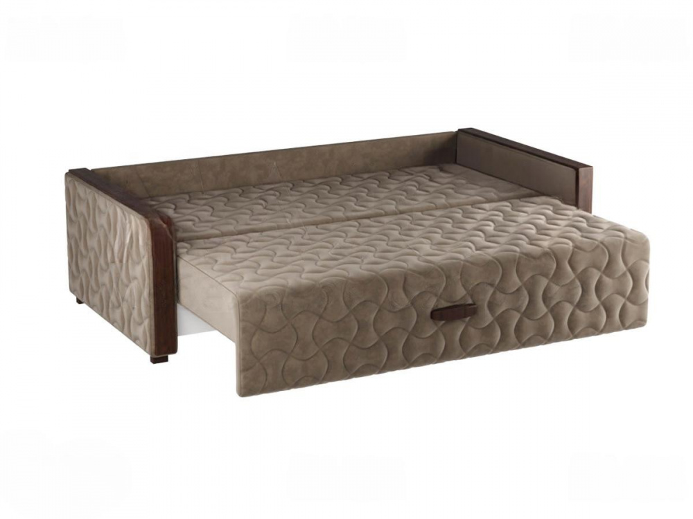 Диван отлично впишется в любой стиль интерьера. Боковины украшены деревянным декором.