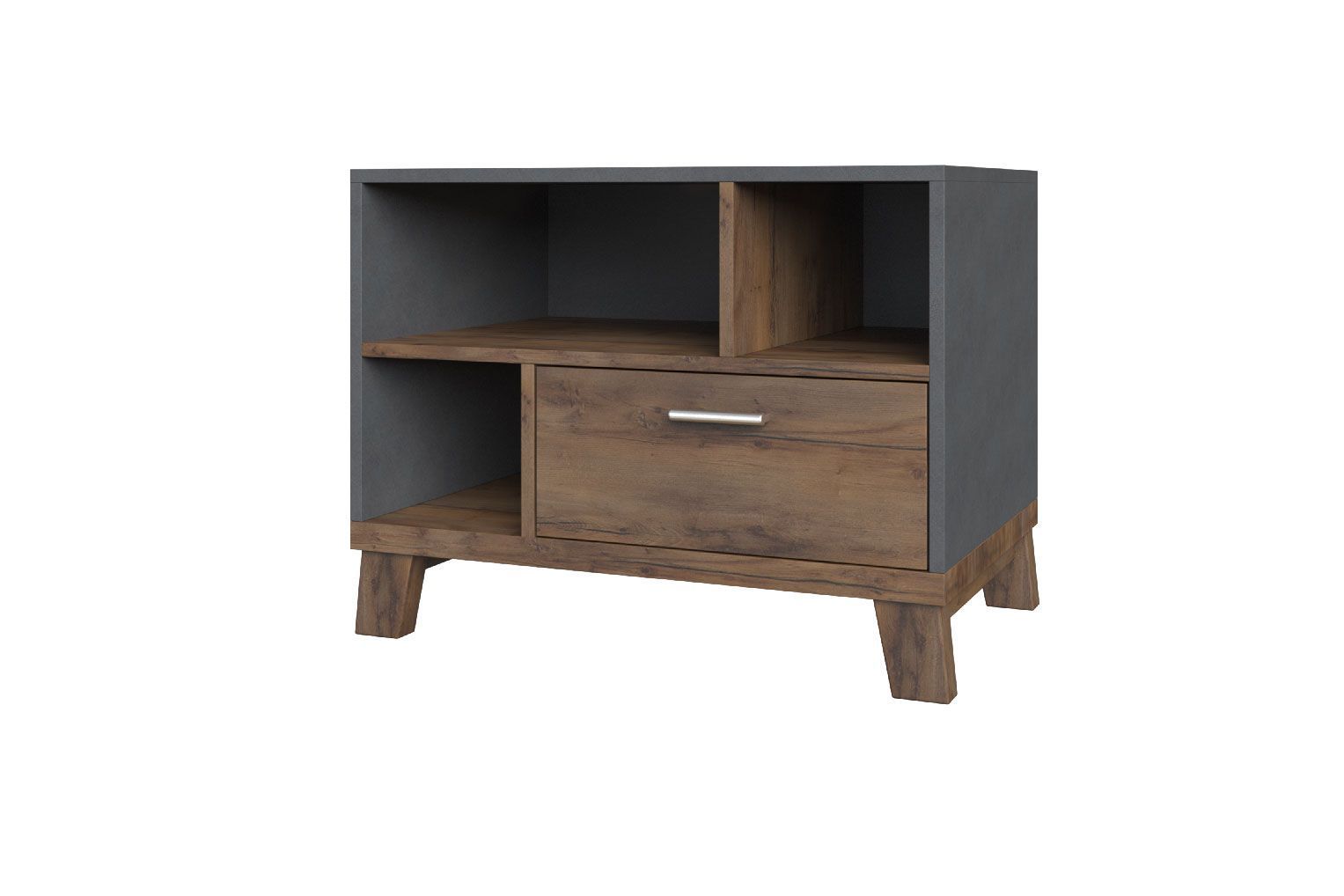 Стол имеет открытые ниши и выдвижной ящик на шариковых направляющих.