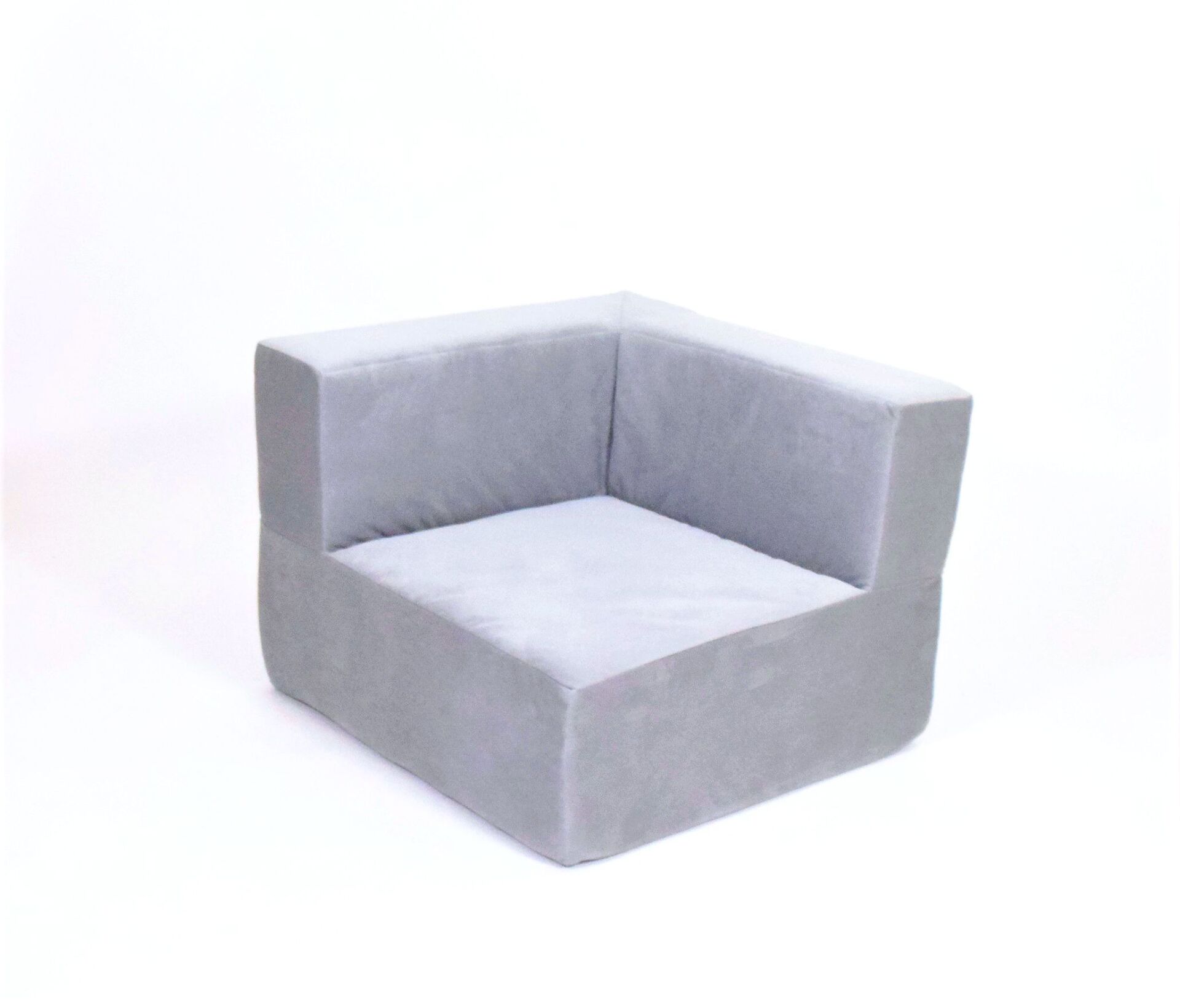 Изделие выполнено из мягкого мебельного велюра с эффектом атикоготь, внутри сформировано на блоках упругого эластичного прочного поролона.Съемный верхний чехол можно снять и деликатно почистить. Низ изделия выполнен из плотной смесовой ткани с водоотталкивающим эффектом.Все изделия очень легкие и позволят передвигать и расставлять модули свободно как взрослому так и ребенку. Отсутствие острых углов и каркаса из дерева обеспечивает безопасность в использовании.