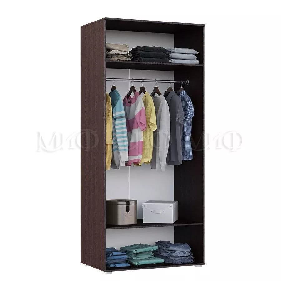 Двухстворчатый шкаф "Ким" предназначен для хранения одежды и комплектуется полками и штангой.