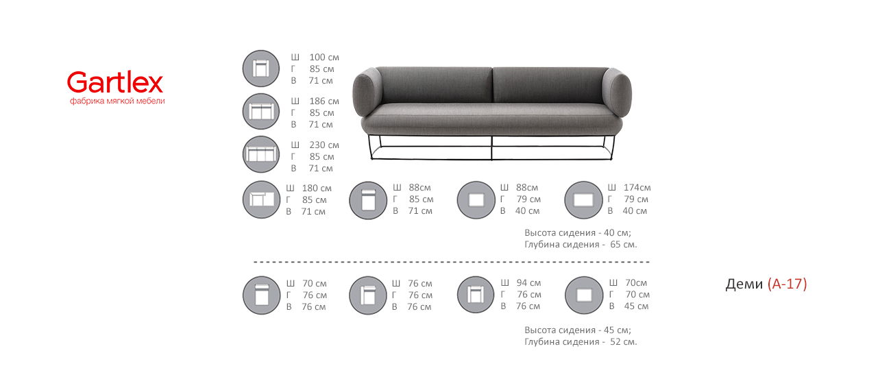 Глубина сиденья - 65 см.