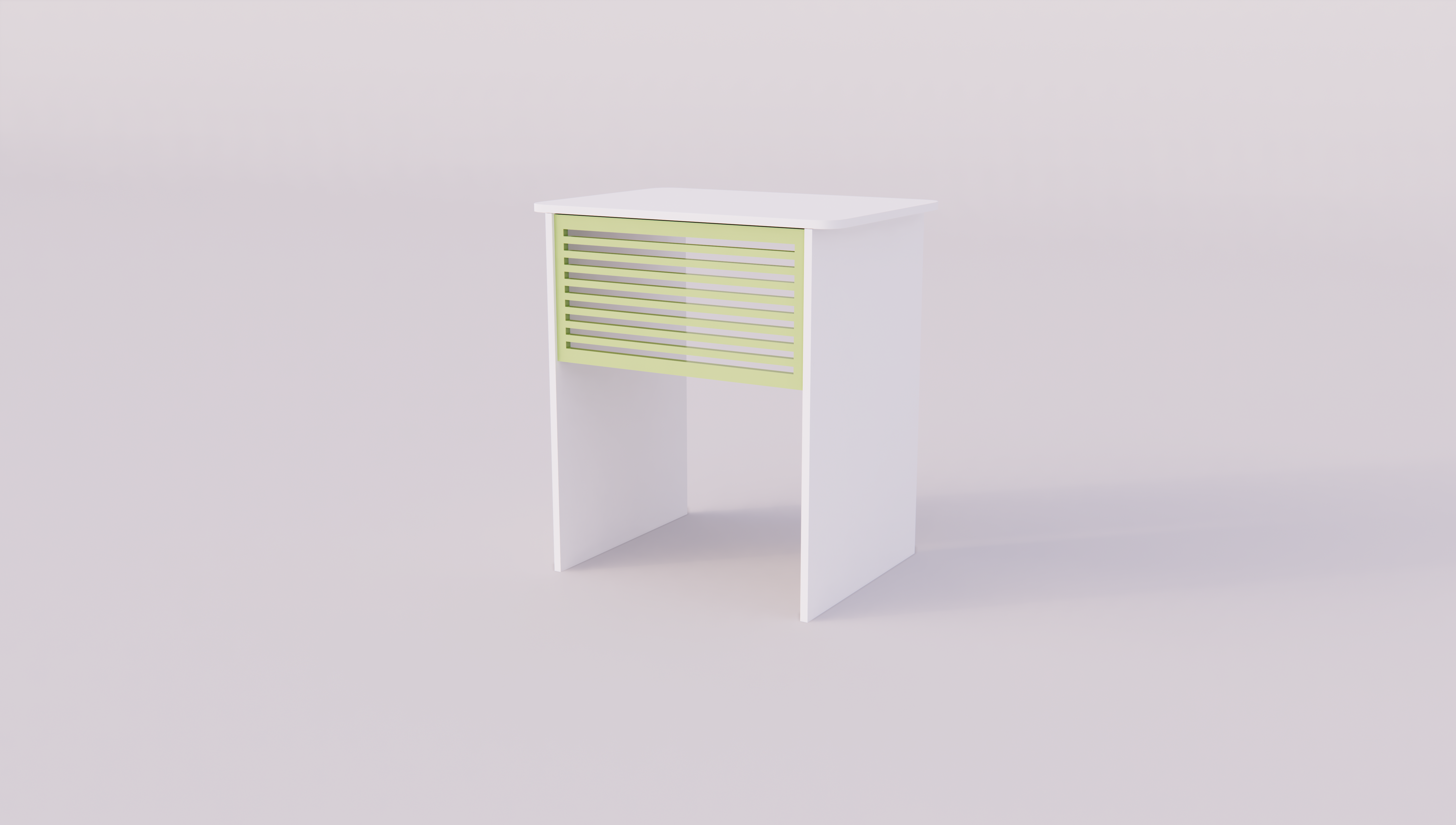 Стол имеет форму прямоугольника с двумя сплошными боковинами по сторонам.