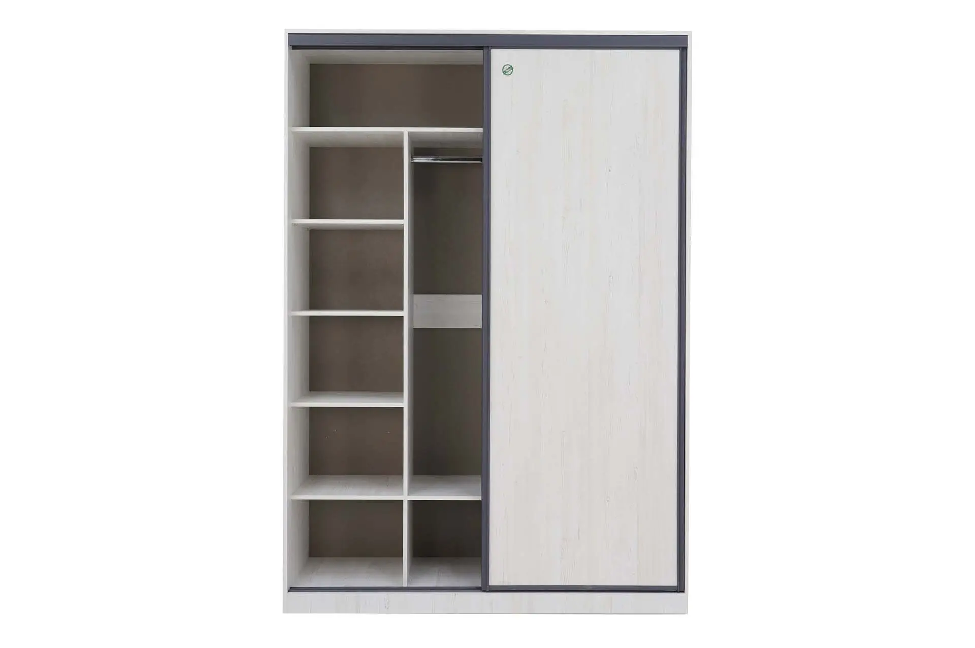 Практичный в использовании шкаф отлично подойдет для спальни. ЛДСП с текстурой дерева будет актуально еще долги годы, а светлый цвет освежит комнату.