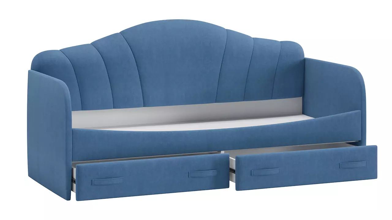 Благодаря своей конструкции кровать отлично разместится вдоль стены и сохранит полезное пространство комнаты. Днем это замечательный диванчик, а ночью – спальное место. Важной деталью комнаты является возможность рационального хранения, поэтому кровать оборудована двумя выдвижными ящиками, которые пригодятся для хранения игрушек и постельного белья.