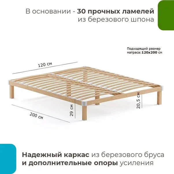 Каркас-массив березы, цвет натуральный. Опоры с усилением.