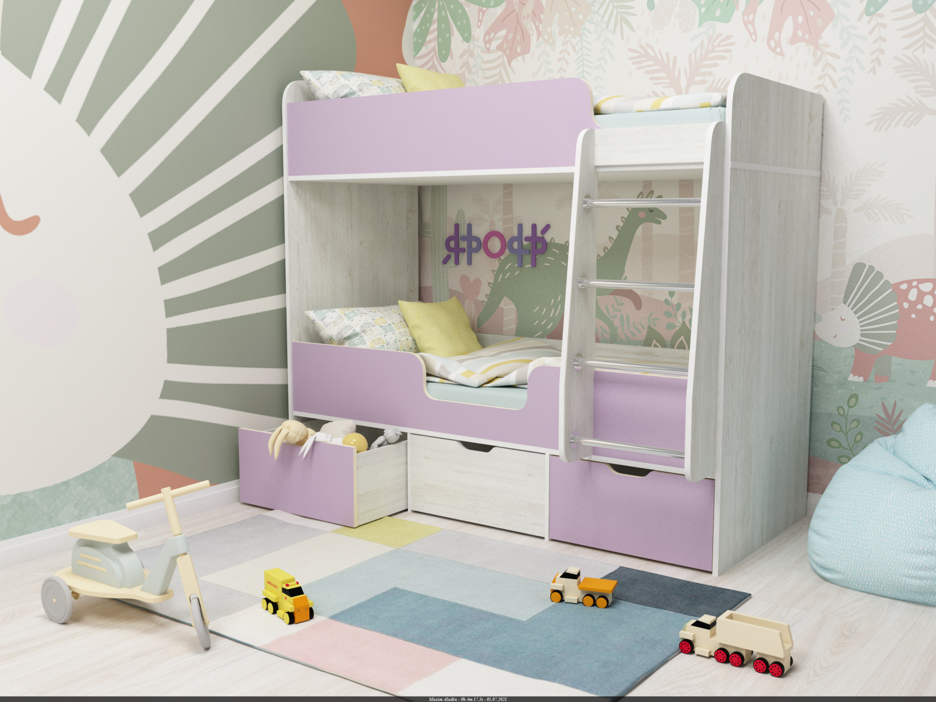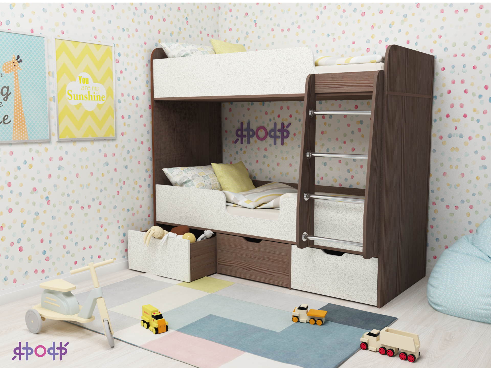 Если вы хотите обустроить детскую комнату для двух малышей, тогда обратите внимание на двухъярусную кровать «Малыш Двойняшка»: компактная модель вмещает в себе разу два полноценных спальных места, а также ящики, в которых можно разместить подушки, одеяла, одежду или игрушки ваших детей. То есть, поставив такую двухъярусную кровать в комнате, вы получаете на небольшой площади сразу две кровати и еще места для хранения, не загромождая пространство детской.