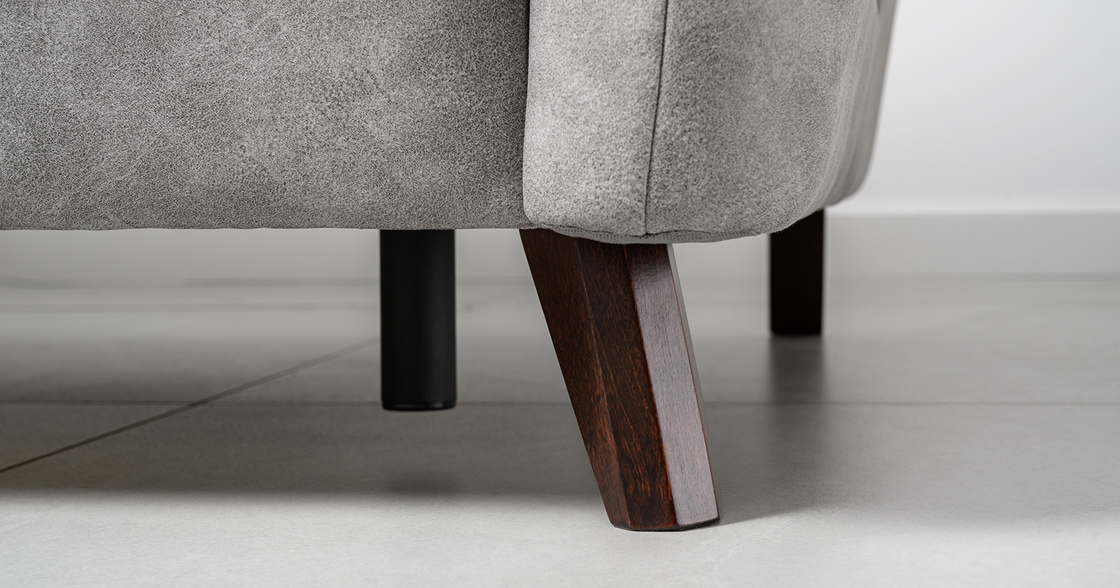 Декоративные канты на подушках дивана, подлокотниках и сиденье. Стежка на передней части сиденья и внешней части подлокотника. Защипы на верхней части подушки. Втяжки с пуговицами на приспинных подушках.