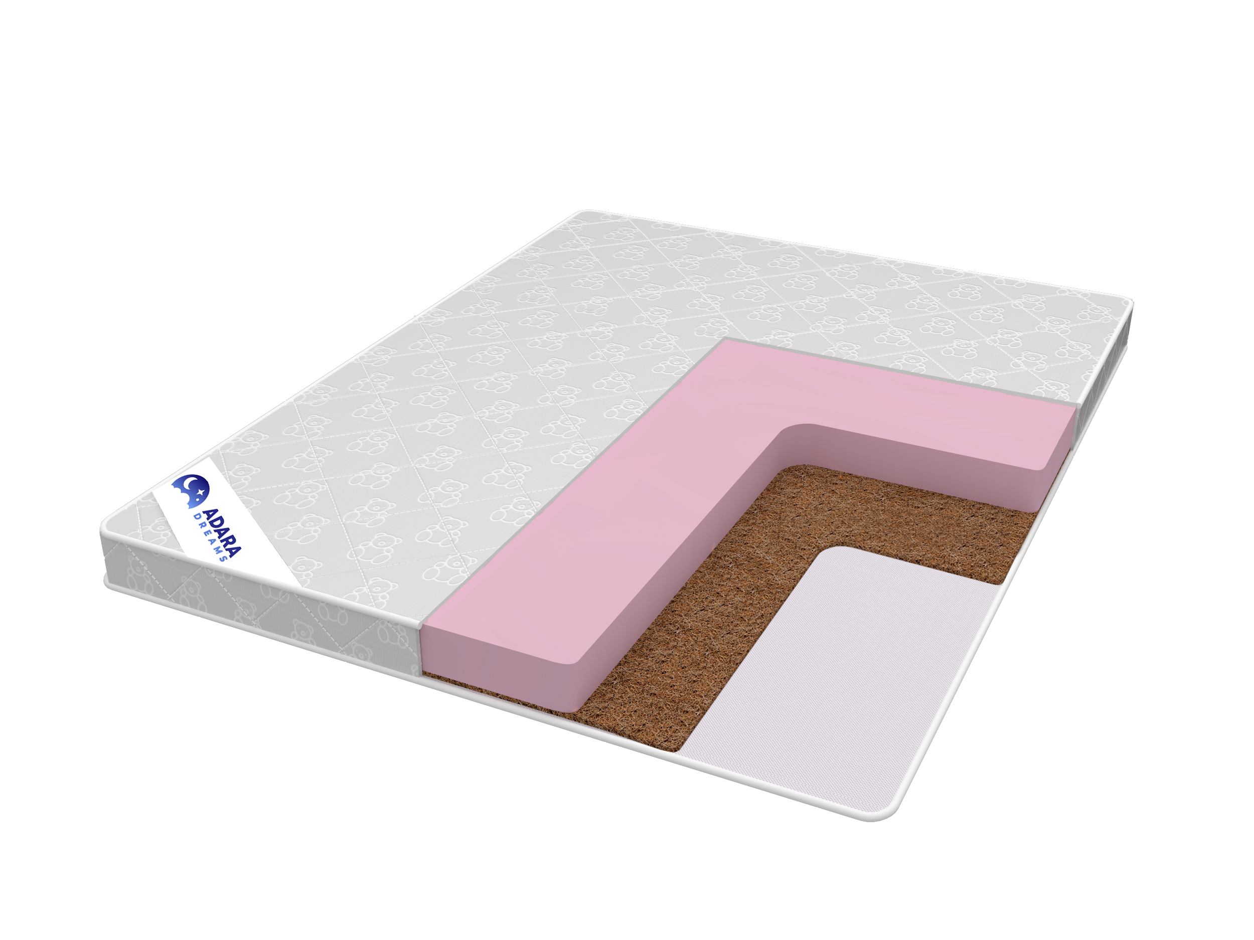 Детский матрас Bell - помогает младенцу и ребенку дошкольного возраста сформировать правильную осанку.Сторона средней жесткости полезна для детей дошкольного возраста, у которых идет фаза роста и формирование опорно-двигательного аппарата. Изделие состоит из слоев упругой экопены, кокосовой койры и войлока. Пена хорошо амортизирует, подстраивается под контуры тела и помогает снять повышенный тонус мышц. Другая сторона -Жесткая подхдит для ребенка до 2-х лет, когда необходима жесткая поверхность для сна для правильного формирования костного аппарата ребенка.Койра заботится о здоровье спины: создает ровную осанку. Войлок выполняет защитную функцию: предохраняет кокос от влаги и посторонних запахов.