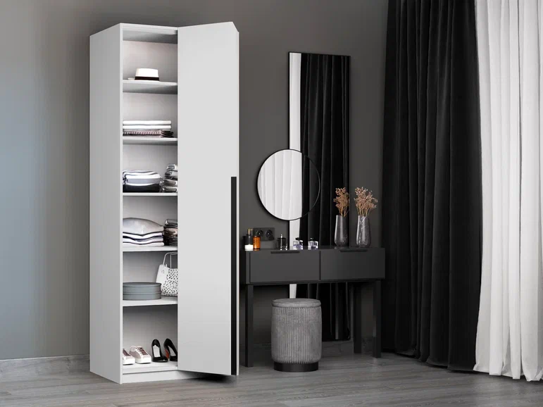 Шкаф оснащен удобной минималистичной ручкой, изготовленной из алюминия.