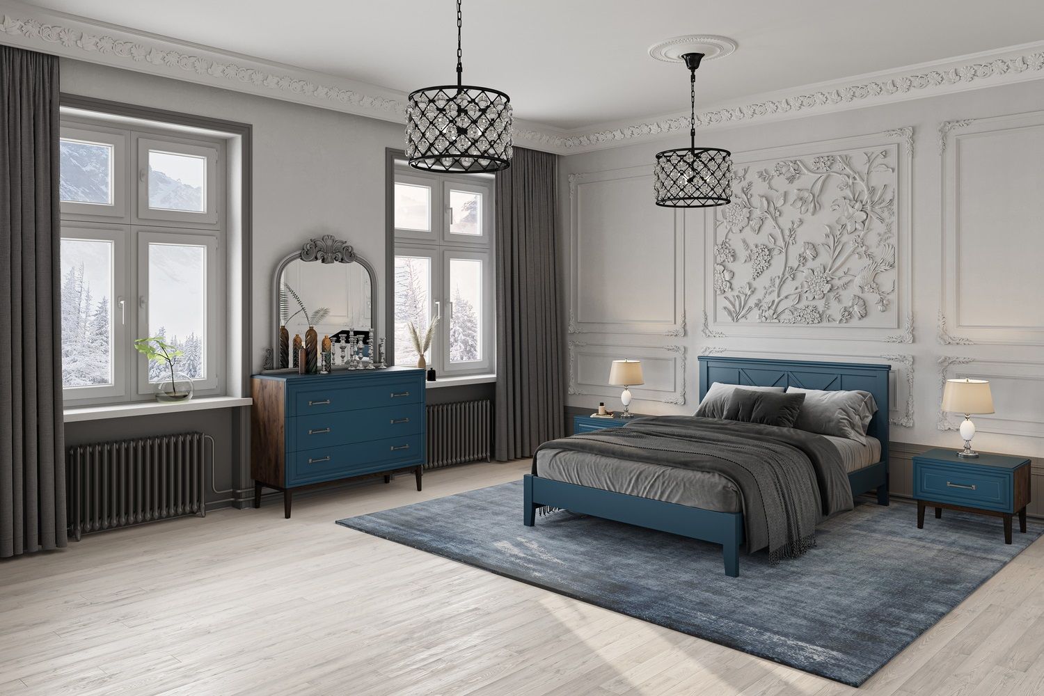 Яркие сочные оттенки отлично смотрятся, расширяют пространство, делают комнату уютной, не перегружая при этом обстановку. При этом спальня нестандартного цвета - это всегда стильно и современно. Именно такая - теплая и стильная, с глубоким синим цветом фрезерованных фасадов - спальный гарнитур Гориция.