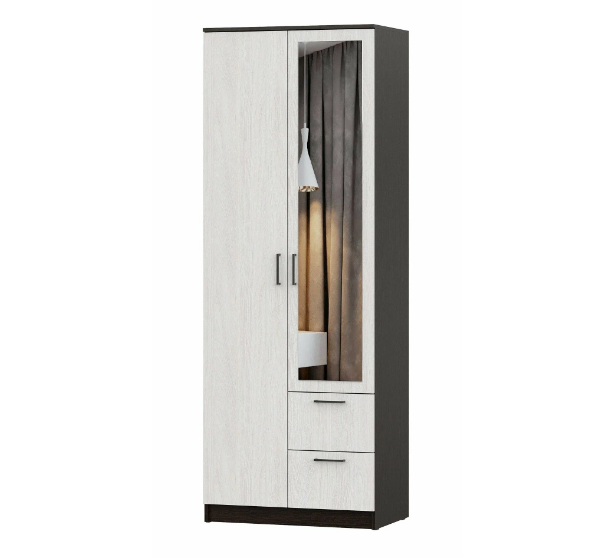 Если площадь и планировка Вашей спальни не позволяют установить большую систему хранения, рекомендуем присмотреться к двухстворчатому шкафу из коллекции Виста 1. Несмотря на компактный размер, всего 80 см в ширину и 50 см в глубину, Вы с комфортом расположите деликатную одежду на плечиках и в сложенном виде, белье и аксессуары. Наполнение шкафа состоит из продольной штанги, комплекта полок и двух выкатных ящиков.