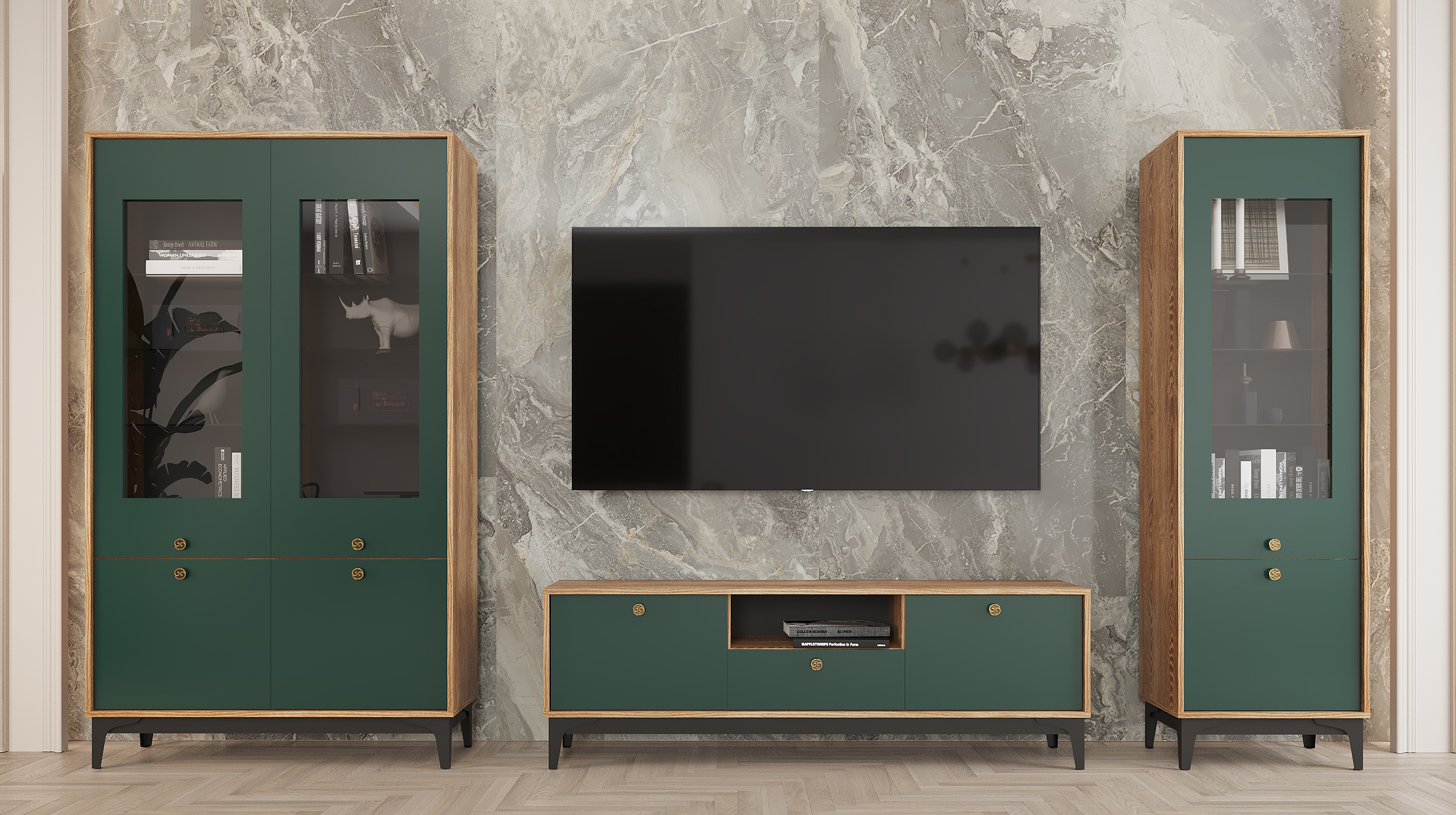 Корпус: ЛДСП Каштан, фасады: МДФ Изумруд