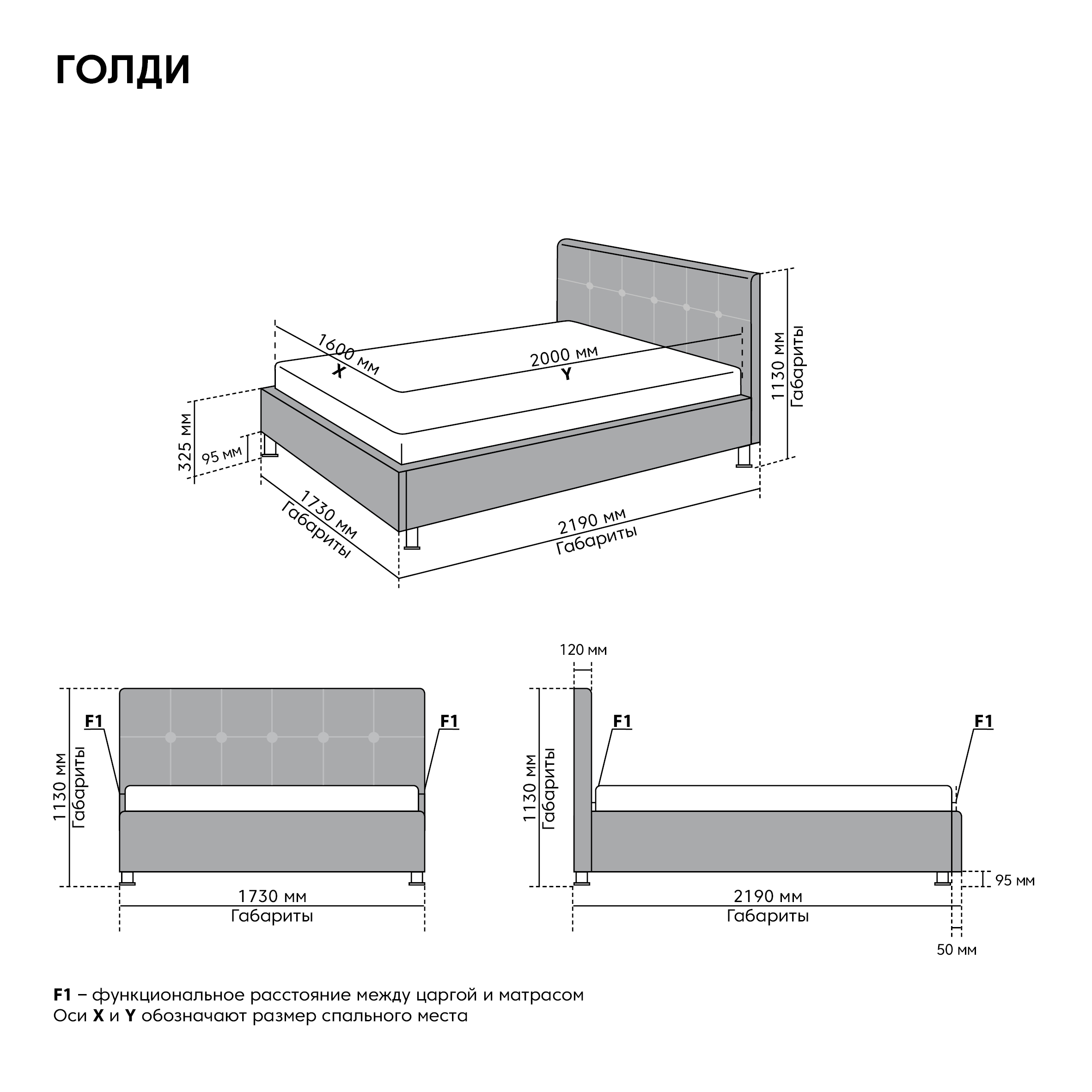 Параметры кровати Голди: