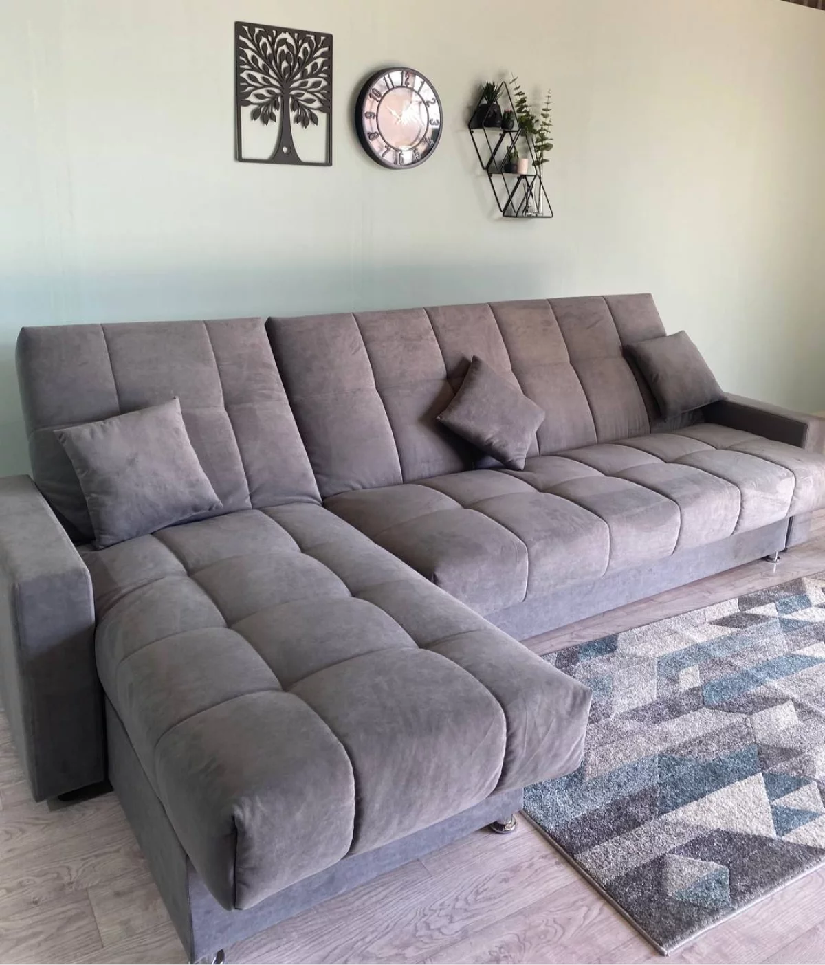 У дивана стильная расцветка. Такая модель будет хорошо смотреться в любом интерьере.