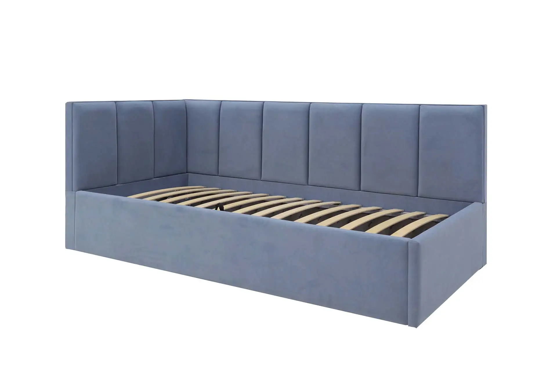 Мягкая односпальная кровать с вместительным ящиком для белья – это настоящая находка в комнату подростка. Цвет ткани вы можете самостоятельно из наших коллекций. Универсальная сборка кровати позволяет вписать ее в любой угол комнаты.