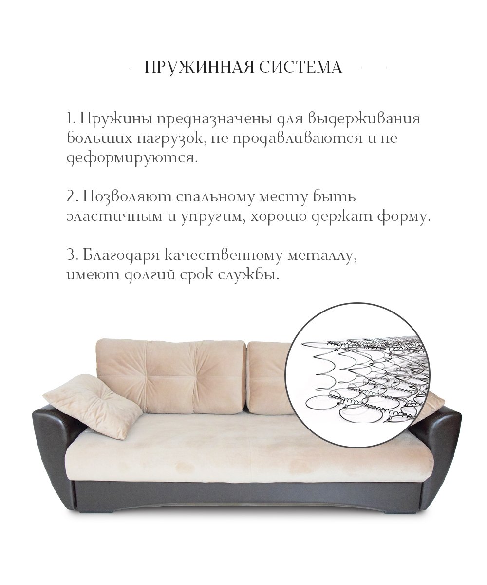 В основании сидения используется вертикальный пружинный блок, который покрыт пенополиуретаном высокой плотности.