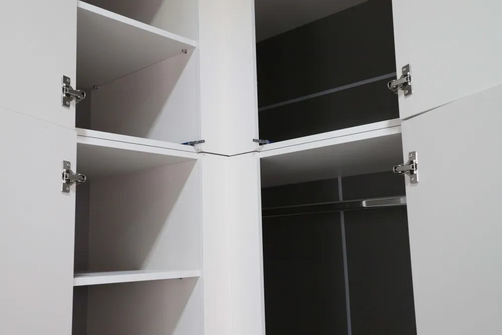 Вместительный угловой шкаф с двумя створками превращает неприметные уголки комнаты в просторное хранилище. Позволяет разместить значительно больше вещей, чем стандартные прямые модели. Оборудован штангами и полками. Возможно дополнительно укомплектовать секцией с ящиками “Николь 29.1”.