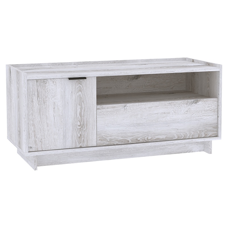 Светлая тумба Флекс 3 Тумба ТВ в современном минималистичном дизайне гармонично дополнит любую гостиную. Изюминка тумбы - бортики по трем сторонам. Выдвижной ящик на шариковых направляющих плавно и бесшумно открываются за фасад. Притопленный цоколь создает ощущение легкости и воздушности. На невысокой тумбе можно разместить телевизор диагональю до 49''.
