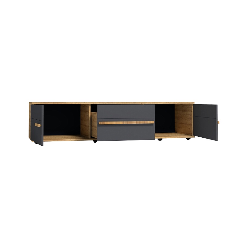 В гостиной CROWN длинная 3 Тумба ТВ может выступать как отдельный функциональный элемент, так и быть центром компоновки. Вмещает телевизор с диагональю до 60''. Две боковые ниши со сборными фасадами и центральный выдвижной ящик на шариковых направляющих - функциональное место для хранения. Все фасады коллекции облицованы ударопрочной кромкой ПВХ толщиной 2 мм. Гармонично дополнят тумбу трапециевидные ручки из массива с текстурой дерева в тон декора корпуса. Вариативность комбинаций тумбы с другими модулями коллекции как нельзя кстати для тех, кому быстро надоедает однообразие в обстановке. CROWN 3 Тумба ТВ, закрепленная на стене на специальные уголки, привносит в пространство воздушность и увеличивает его визуально, под тумбой остается свободное место, которое оценят, например, владельцы робота-пылесоса. Внимание! Какими бы надежными не были подвесы и выбранный крепеж, стена, на которую крепится тумба, обязательно должна подходить для размещения навесных конструкций. Несоблюдение этого правила может закончиться дорогостоящим ремонтом.