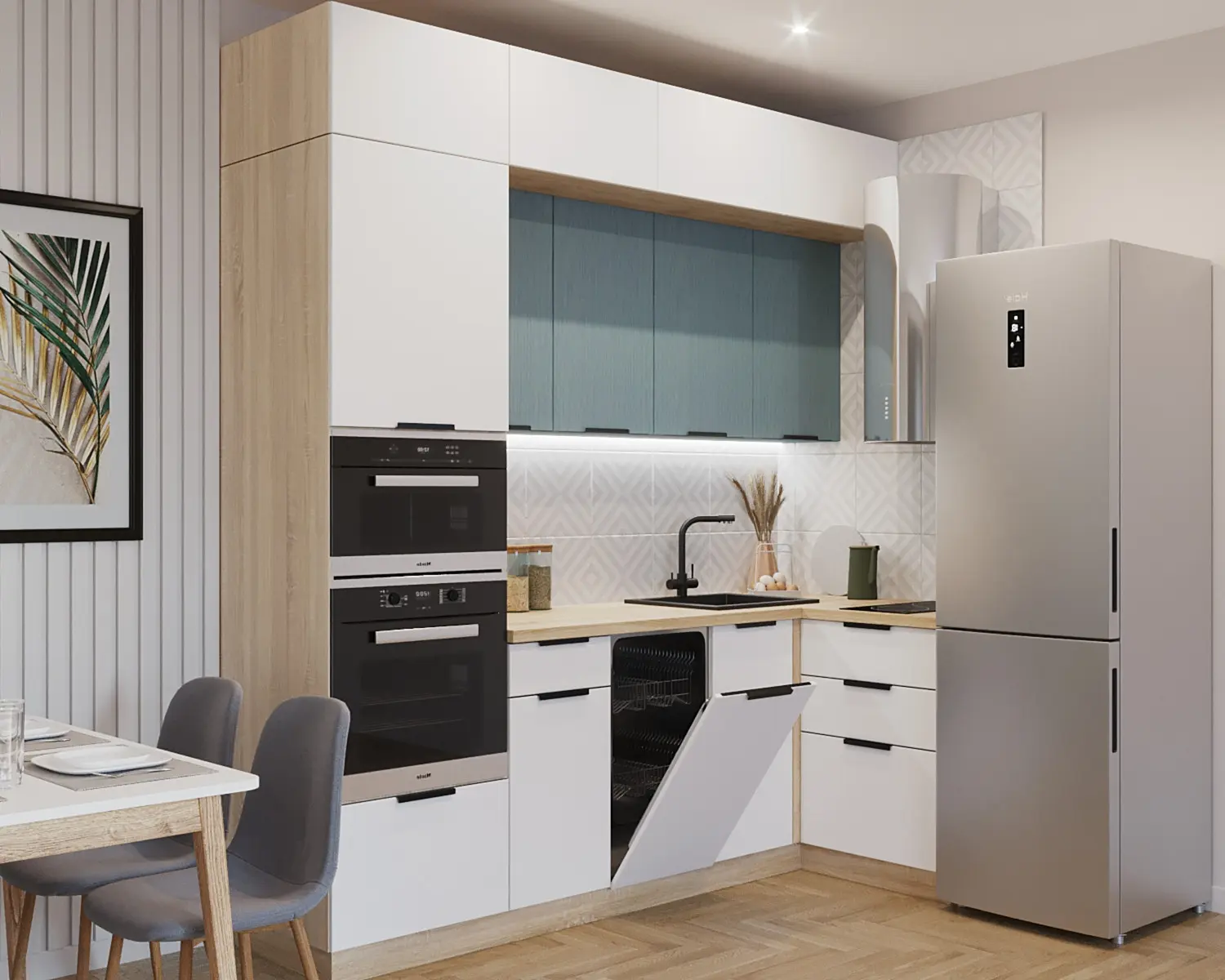 Магазин мебели «100Диванов» предлагает купить Кухонный гарнитур арт. 6 Тальк РоялВуд Голубой 2450х1200 мм в Югорске по выгодным ценам от производителя с доставкой.