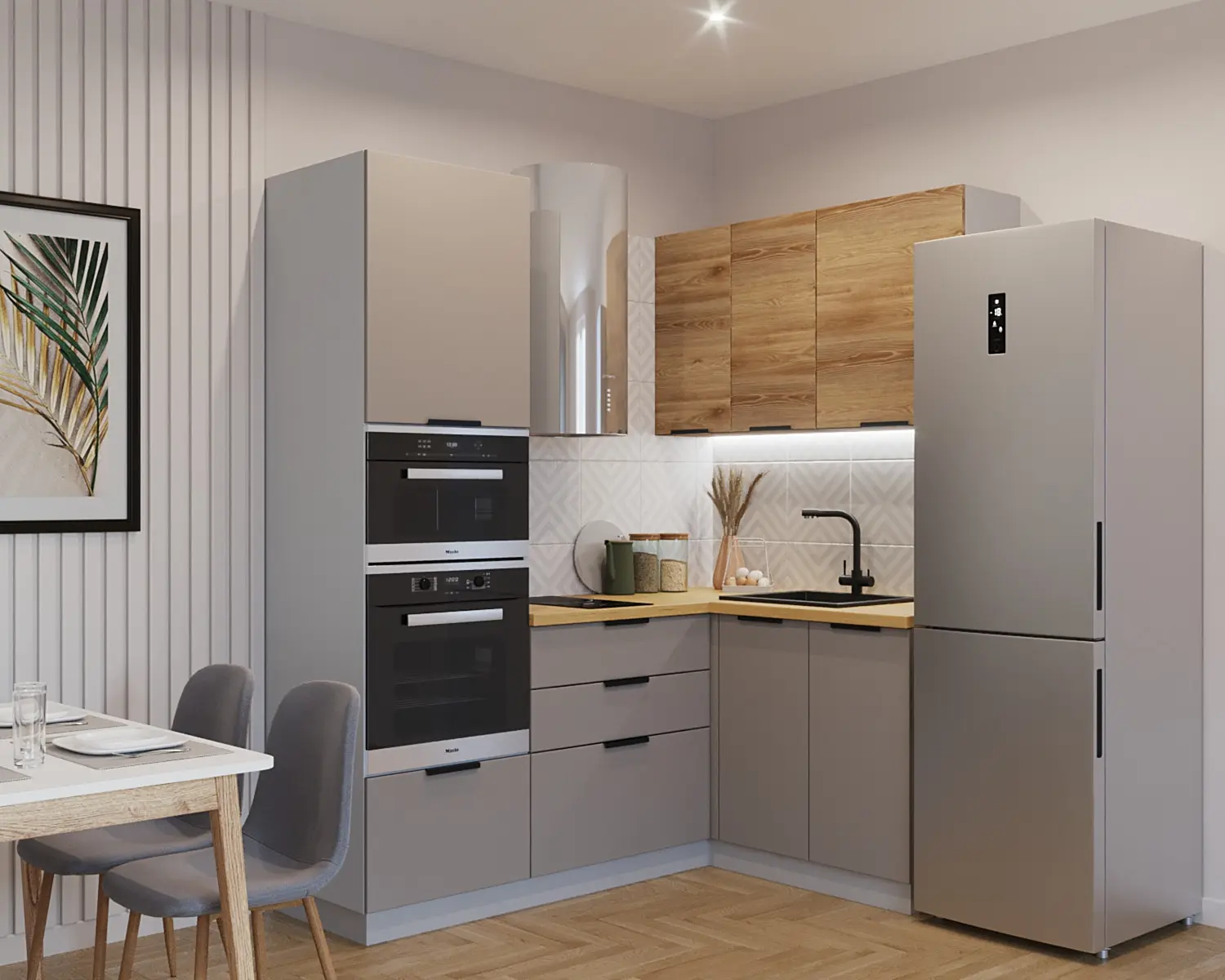 Магазин мебели «100Диванов» предлагает купить Кухонный гарнитур арт. 8 Обсидиан Рустик натур 2000х1400 в Югорске по выгодным ценам от производителя с доставкой.