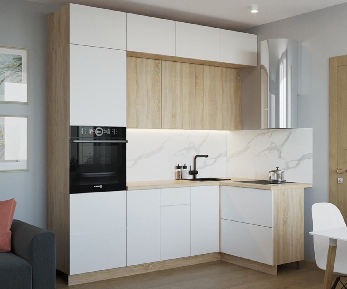 Матовые белые кухни — классика дизайна. Они практичны и универсальны, а сочетание с деревом идеально впишется в любой стиль: прованс, современная классика, минимализм.