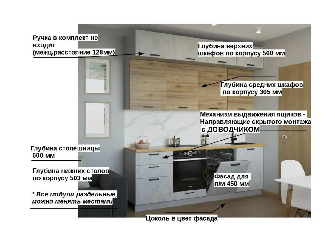 *Дополнительную информацию о том, как купить Кухонный гарнитур ЛОФТ-33 (2400 мм) уточняйте у нашего менеджера по телефону +79292022735.