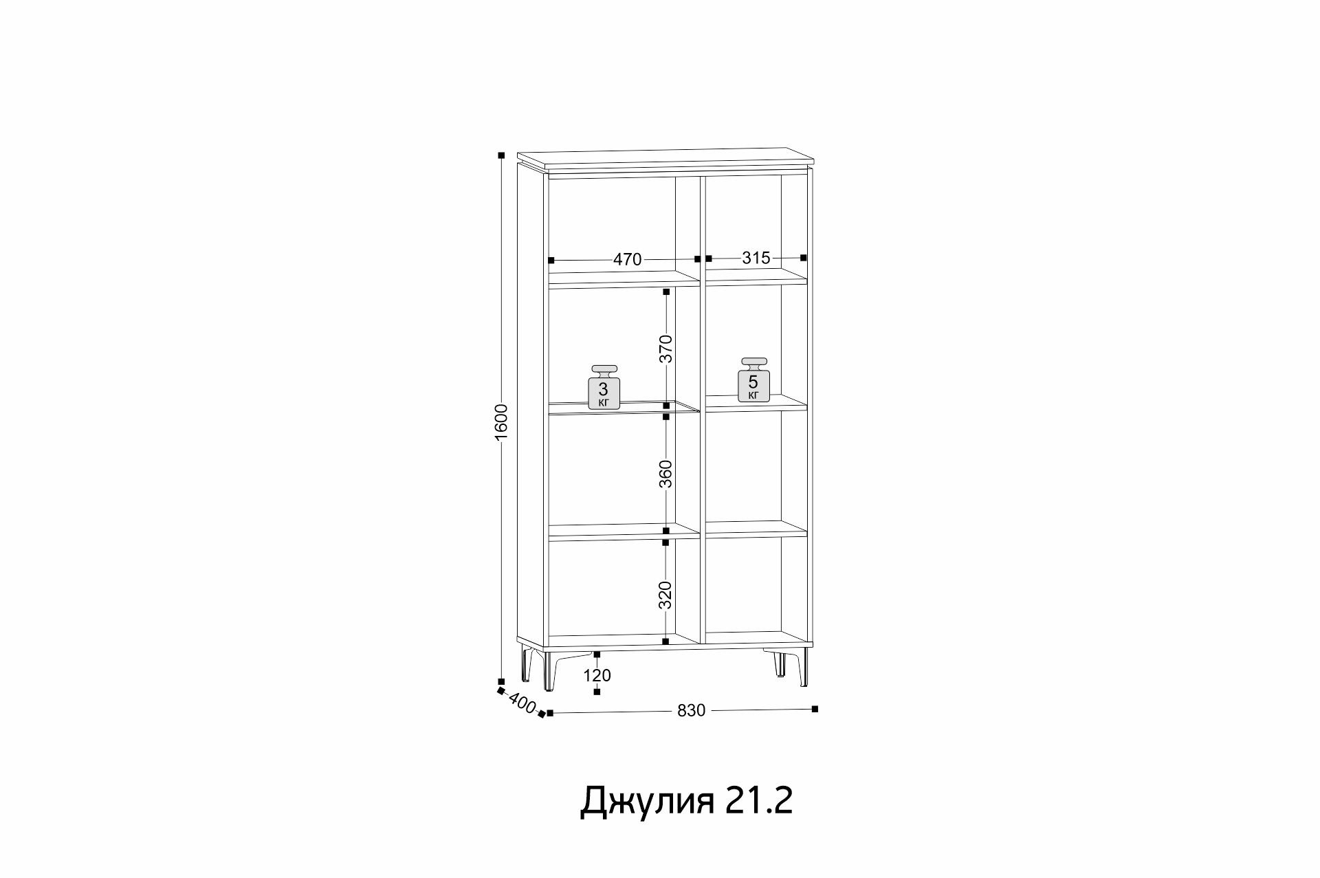 Ширина: 830 мм | Глубина: 400 мм | Высота: 1600 мм