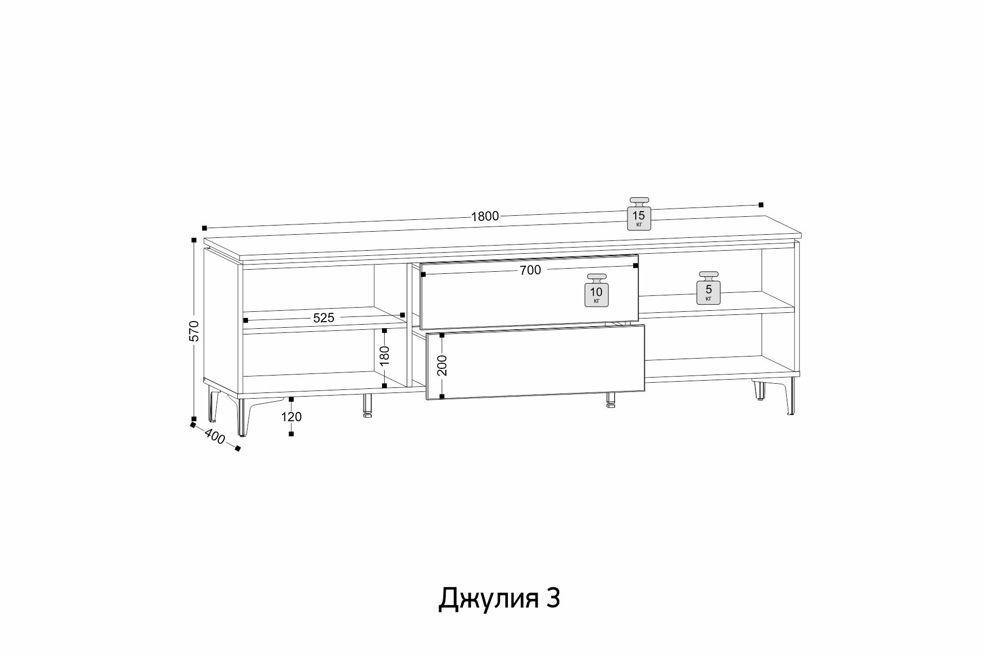 Ширина: 1800 мм | Глубина: 400 мм | Высота: 570 мм
