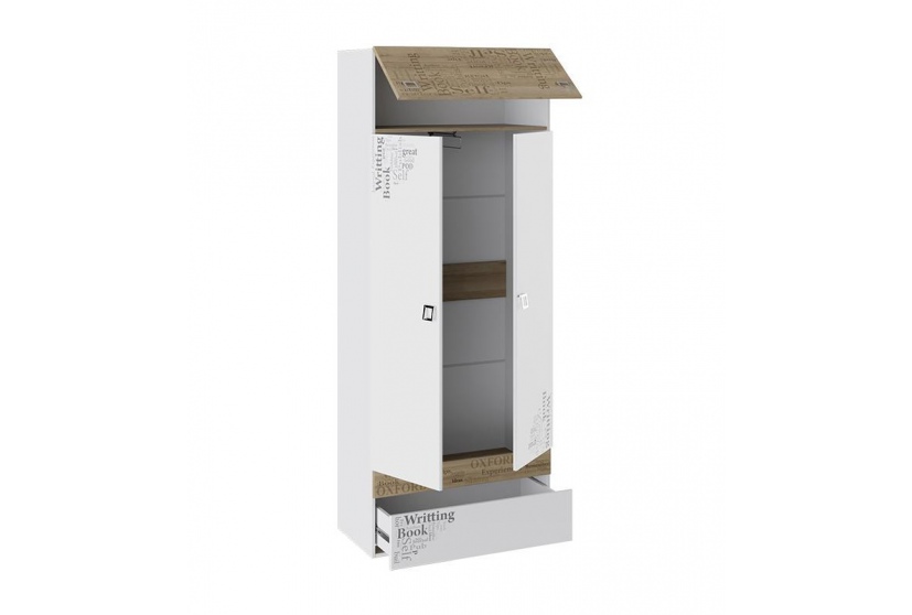 Шкаф для одежды "Оксфорд" комплектуется выдвижной штангой и ящиком. Наверху располагается отделение с горизонтальной дверцей.
